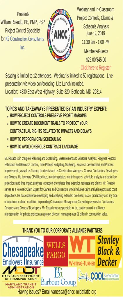 June 12, 2019, 11:30am - 1:00pm with William Rosado, PE, PMP, PSP.